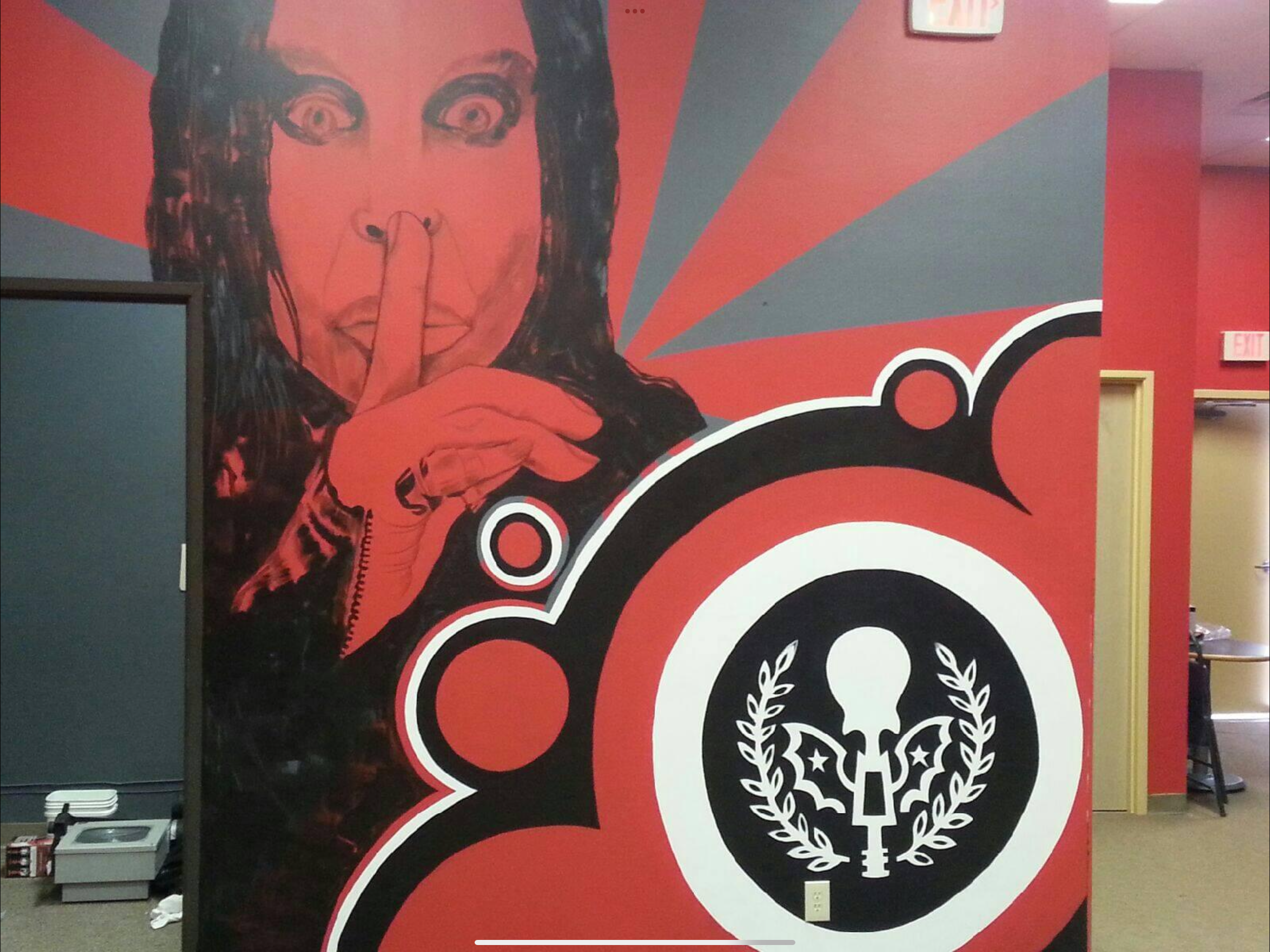 This series of murals took our artists six days to complete and included paintings from the front entrance all the way through the school showcasing the school’s logos as well as many Rock and Roll legends such as Ozzy Osborne, Jimi Hendrix, Slash and more!